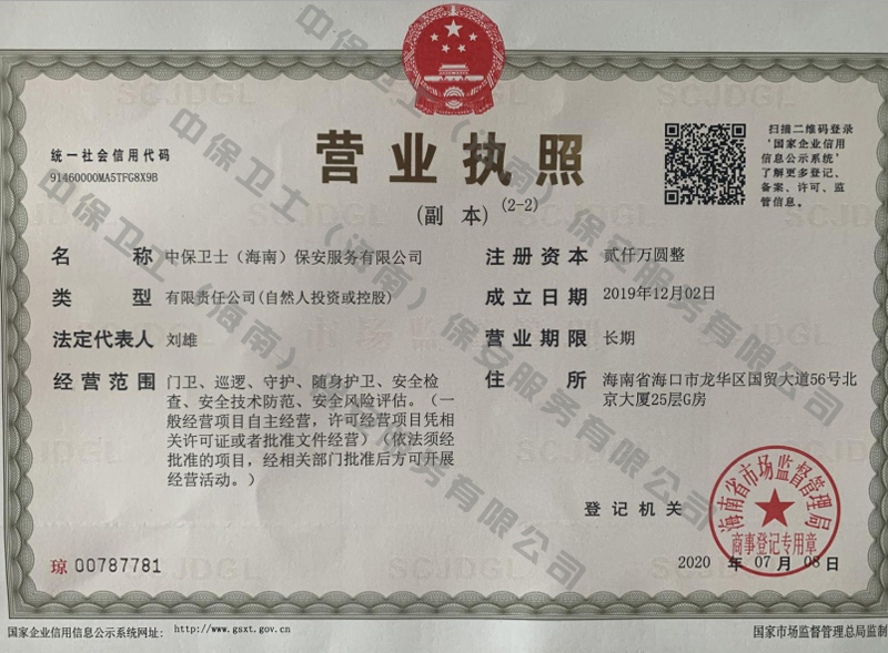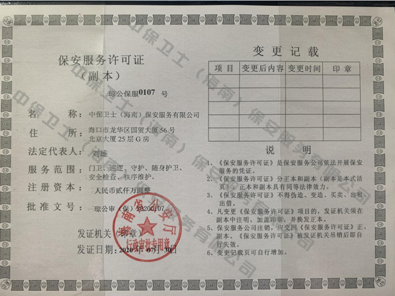 郑州钧恒绘画艺术培训有限公司是经海南省公安厅批准,依法持有《保安服务许可证》,提供保安服务、门卫、巡逻、守护、区域秩序维护、随身护卫、安全检查的专业化保安服务公司。
